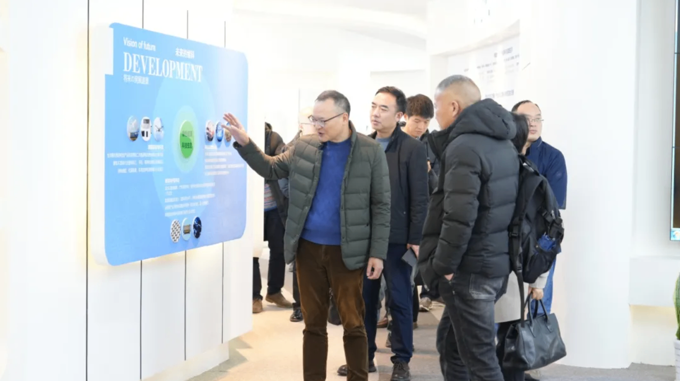 隨后,參會嘉賓參觀了維科文化展廳,陳董重點介紹了維科集團的發展歷程以及新能源、新材料、新物聯三大產業的發展情況。通過陳董的介紹,嘉賓們加深了對集團綠色能源科技生態戰略發展演變歷程的認識,并詳細了解了維科技術在新能源領域的多元化產品及前沿技術創新成果。