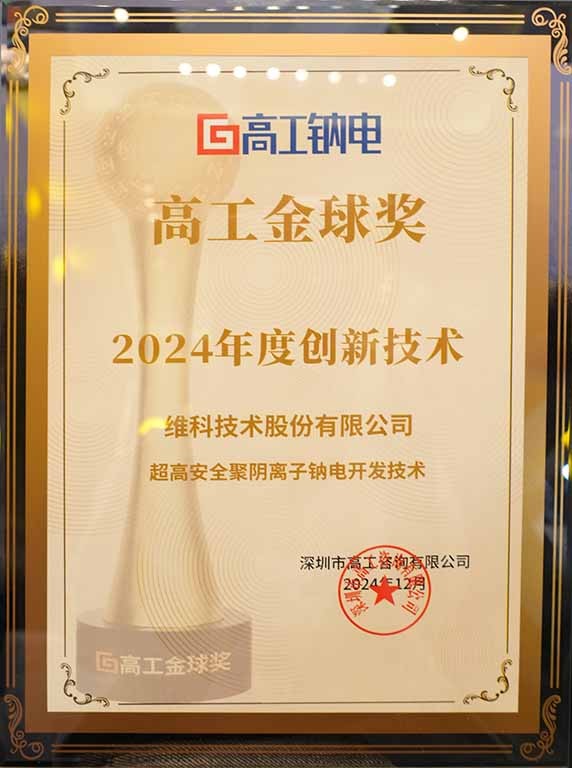 12月19日,由新型儲能應用聯盟、中國風光儲網、綠電儲能聯盟等單位聯合主辦的“2024第三屆中國國際儲能產業大會”在上海舉辦,維科技術憑借在儲能領域的創新表現,脫穎而出,斬獲“中國儲能行業十大電池系統品牌”獎項,彰顯了公司在儲能領域的創新能力和鈉電市場的領先地位。